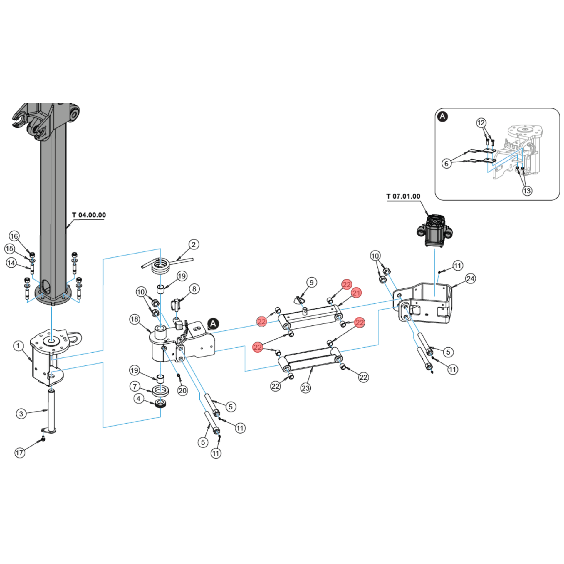 Bras supérieur avec bagues intégrées pour la faucheuse sous glissière de la marque Energreen. Il assure le guidage et la stabilité du bras de fauche, tout en garantissant une articulation fluide et durable grâce aux bagues de pivot.