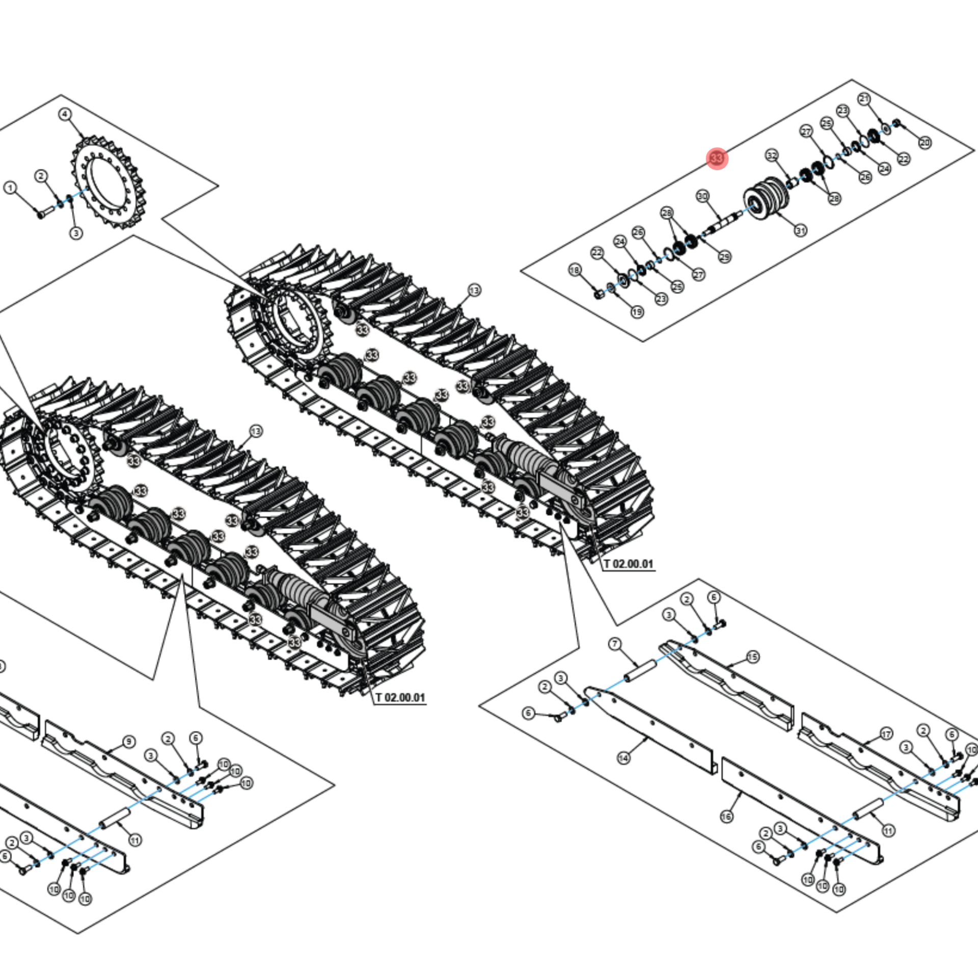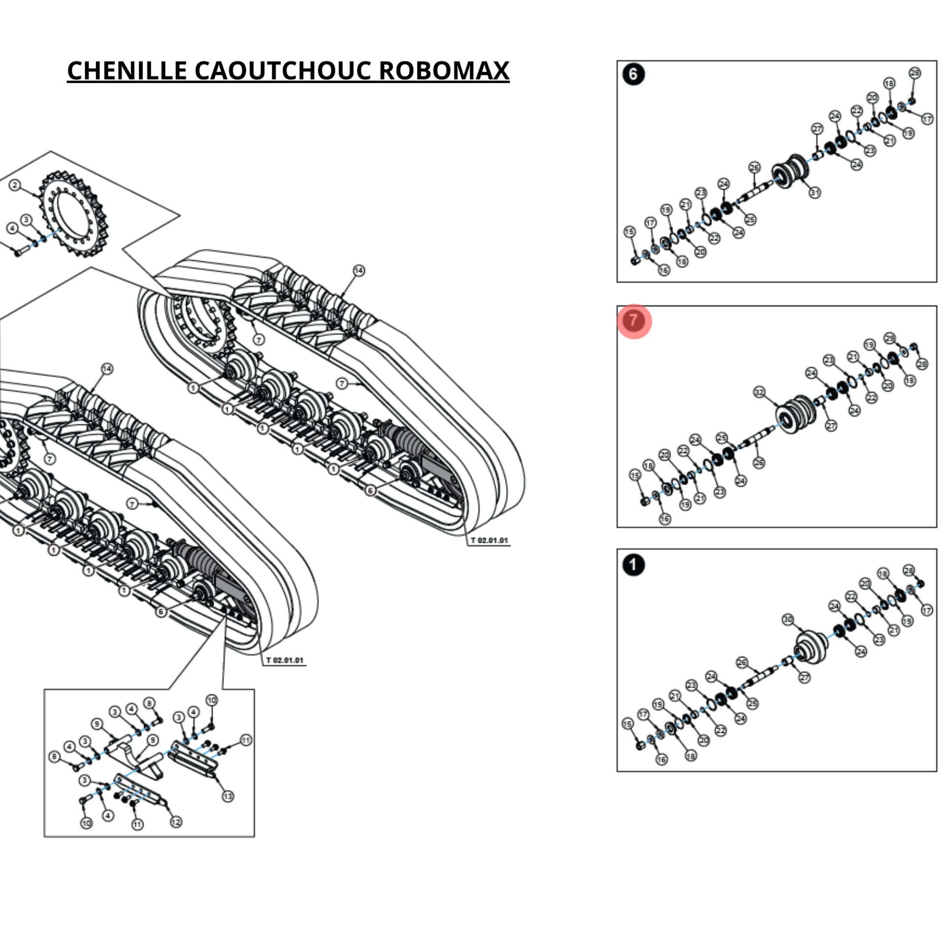 Il assure le guidage le long de la trajectoire. Les chenilles restent alignées et bien en place, évitant tout déraillement qui pourrait endommager la machine ou interrompre son fonctionnement.